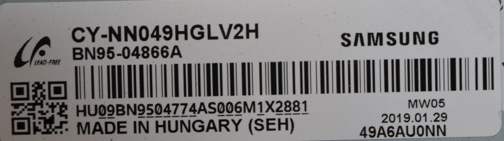 SAMSUNG UE49NU7179UXZG Version 04/UNU7100 DISPLAY CY-NN049HGLV2H