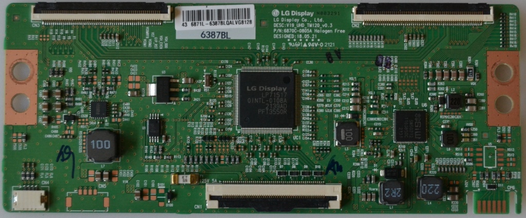 TCon BOARD,LG display Co LTD, DESC:V19_UHD_TM120_v0.3 P/N 6870C-0805A, Halogen Free