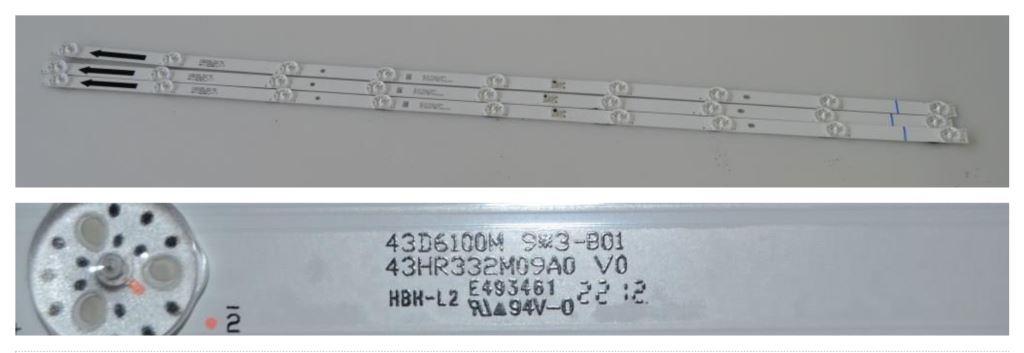 LED BACKLAIHT ,43D6100M 9*3-B01,43HR332M09A0 V0,3x9 diod,790mm,