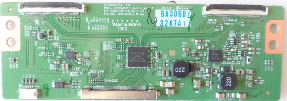TCon BOARD LG display CoLTD MODELLC470EUN-PFF1_Control_Ver 1.0 P/N 6870C-0451a