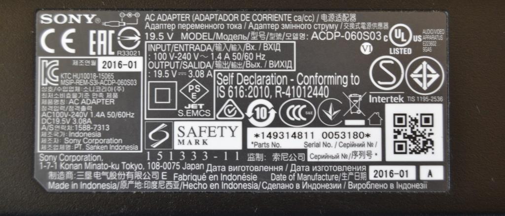 ADAP/SONY/19.5V/3.08A/1