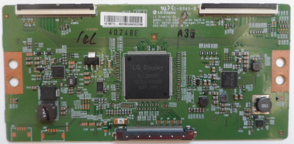 TCon BOARD LG display Co LTD MODEL , V15 43UHD TM120 Ver0.4 , P/N 6870C-0552A Halogen Free