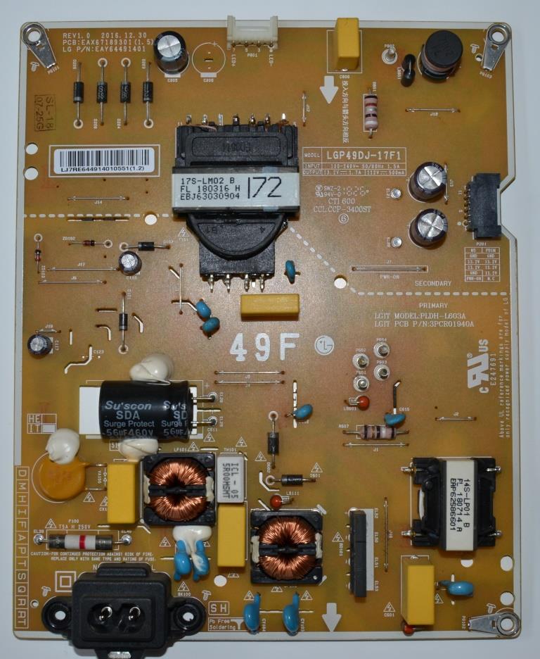 POWER BOARD ,LGP49DJ-17F1,EAX67189301(1.5),EAY644901401, 49LK5900PLA,,