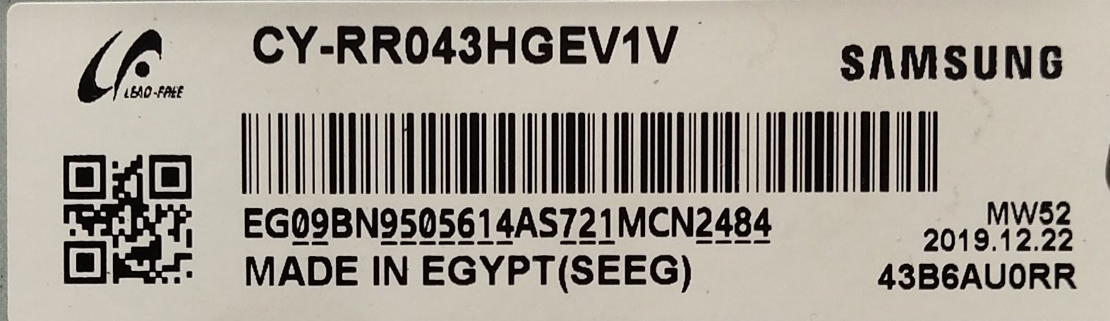 LCD панел ,CY-RR043HGEV1V, за SAMSUNG QE43Q60RATXXH Version 01/QRQ60 Тестван работещ