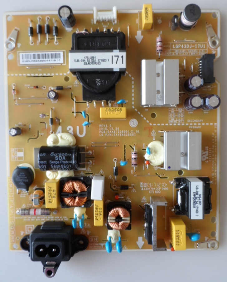 POWER BOARD ,LGP43DJ-17U1,EAX67209001(1.5),EAY64529501, for ,LG ,43UJ635V,