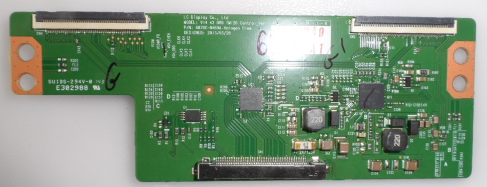 TCon BOARD LG display Co ,LTD MODEL V14 42 DRD TM120 Control_Ver1.4B , P/N 6870C-0469A, ,Halogen Free, DESIGNED:2013/03/28,