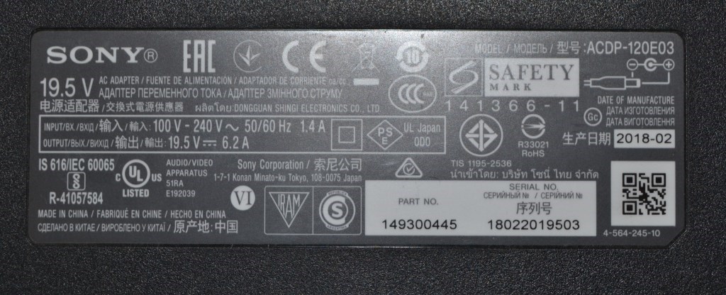 ADAPTER ORIGINAL for SONY, 19.5V/6.2A, ACDP-120E03,