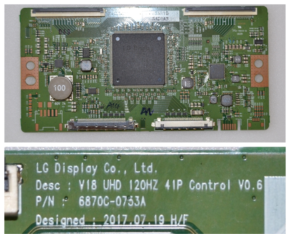 TCon BOARD,LG display Co LTD, Model V18 UHD 120HZ 41P Control V0.6
